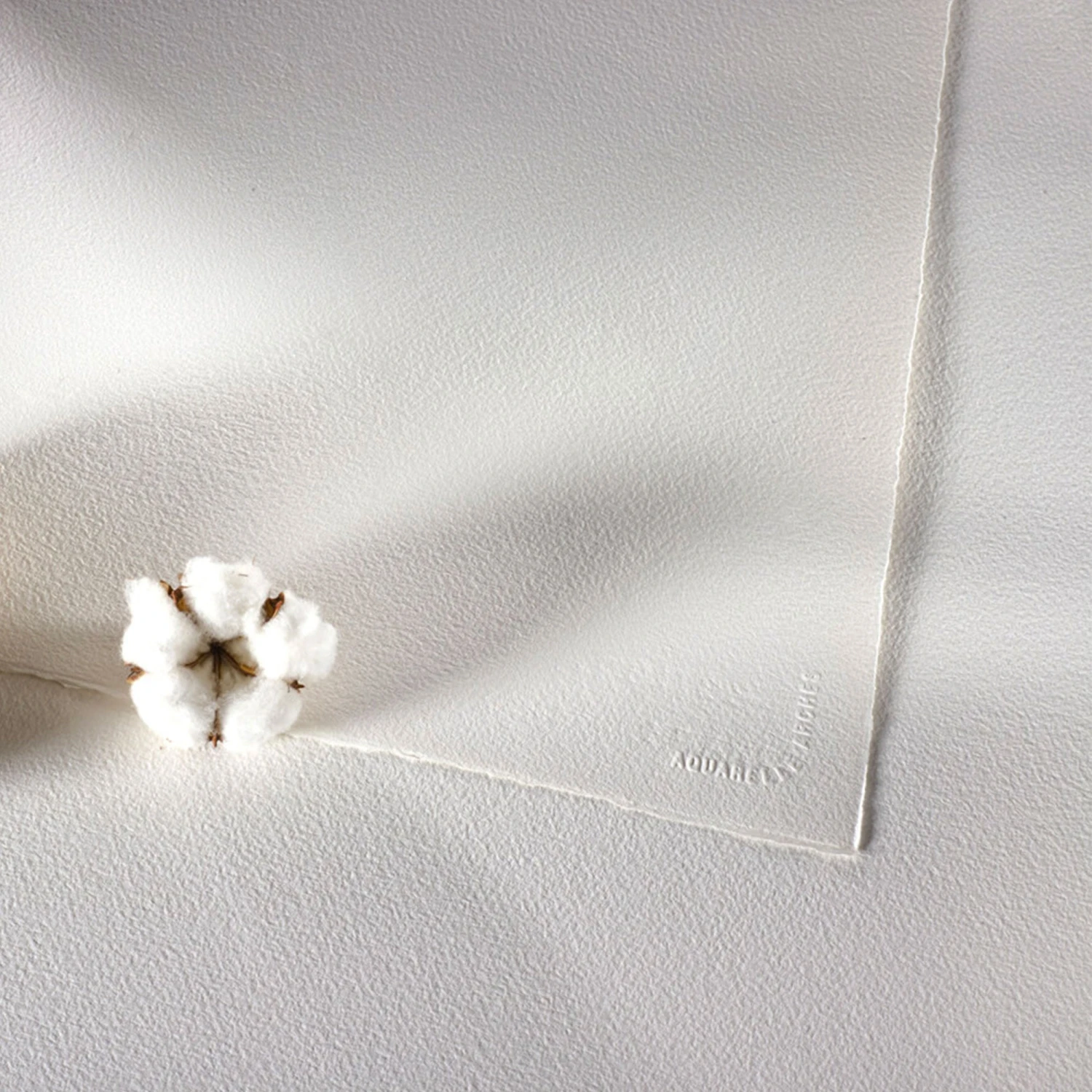 A high quality 100% rag watercolour paper. Possessing a natural whiteness with very high conservation qualities and a neutral Ph. Available in NOT, Hot Press and ROUGH, it is gelatine sized, air-dried and mould made. Ideal for watercolours, wet on wet and dry brush techniques and allows corrections to be made easily.