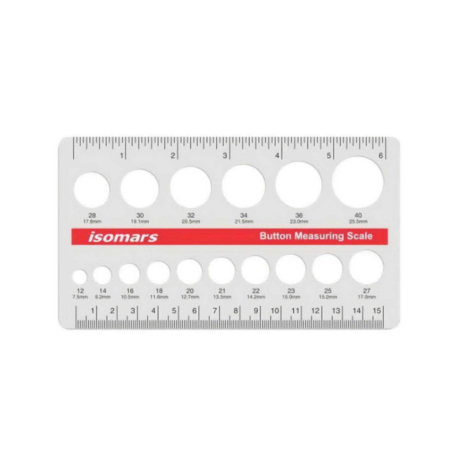 This button measuring scale is made of high quality transparent acrylic. A very useful scale for fashion designing and tailoring industry.