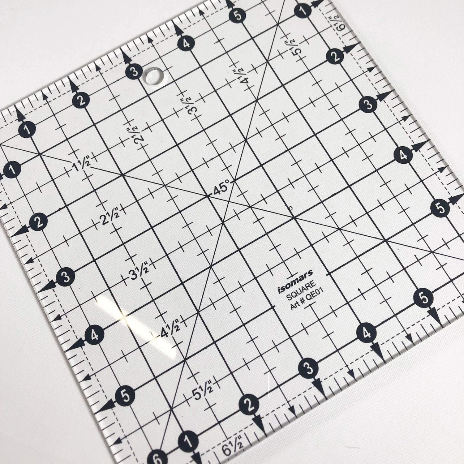 An acrylic ruler that is durable and transparent. Its clear acrylic material and 45° angle markings make it ideal for measuring angles during quilting. This square is great for a wide range of tasks, including marking and rotary cutting, as well as cutting half-square and quarter-square triangles.