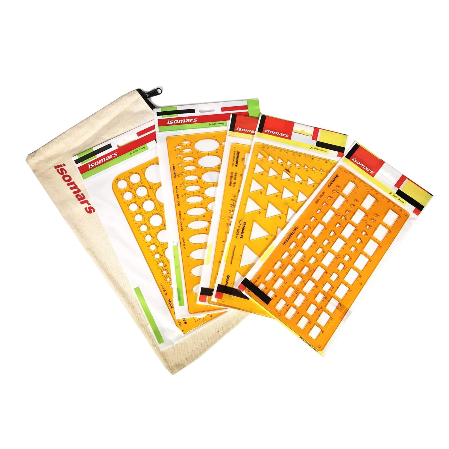 This handy combo pack featuring a comprehensive set of templates, bundled with a convenient canvas bag for portability, are a great, cost-effective option for artists.