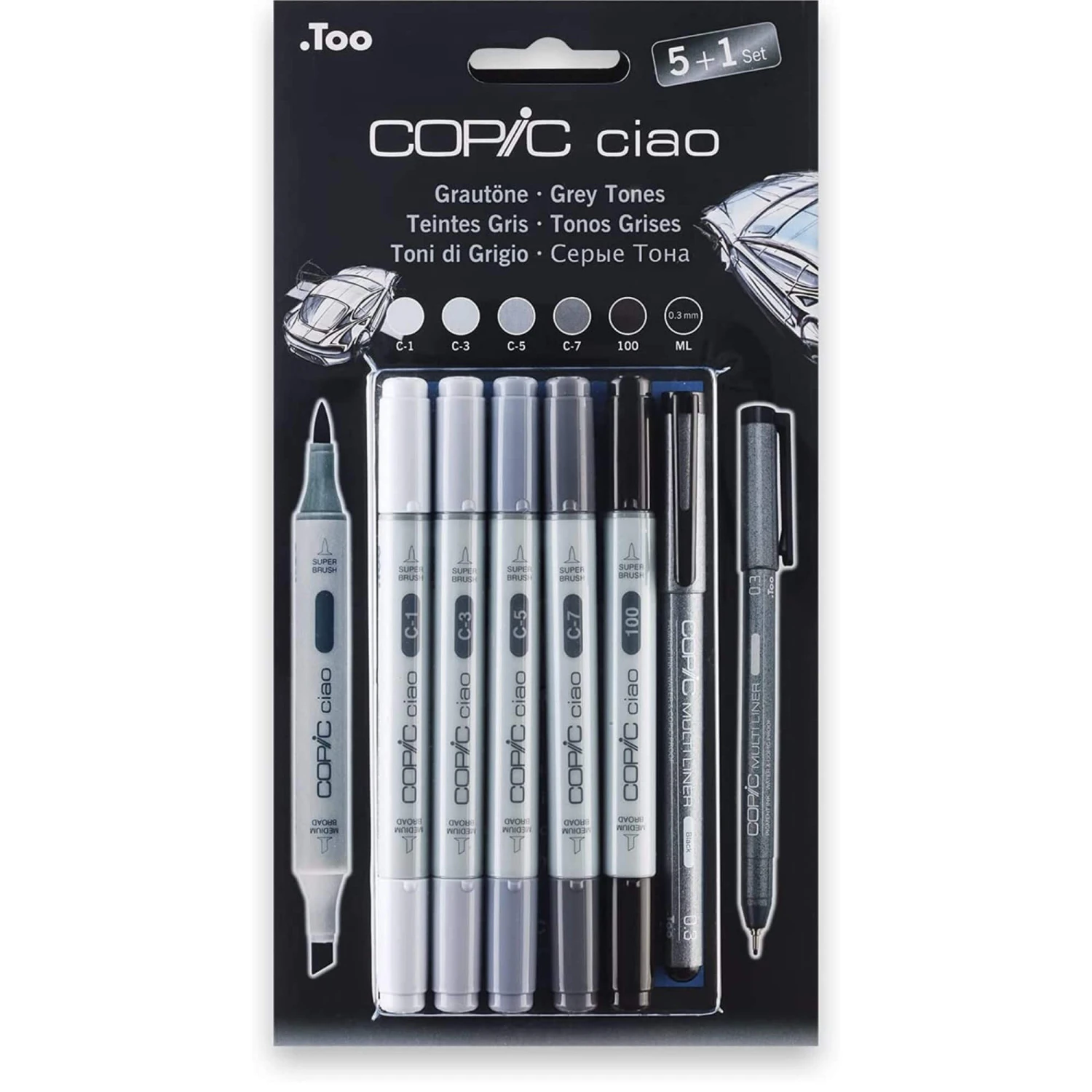 Set contains 5 Ciao markers C1, C3, C5, C7, 100 and a Copic Multiliner 0.3mm.