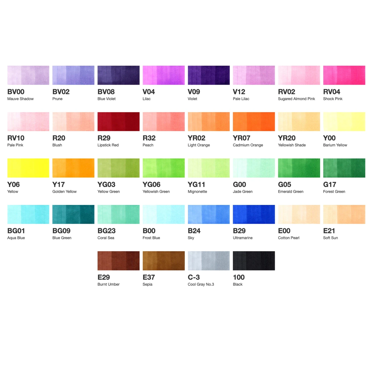 Set contains 1 of each :- B00, B24, B29, E00, E21, E29, E37, C-3,100, YG03, YG06, YG11, G00, G05, G17, BG01, BG09, BG23, R20, R29, R32, YR02, YR07, YR20, Y00, Y06, Y17, BV00, BV02, BV08, V04, V09, V12, RV02, RV04, RV10.