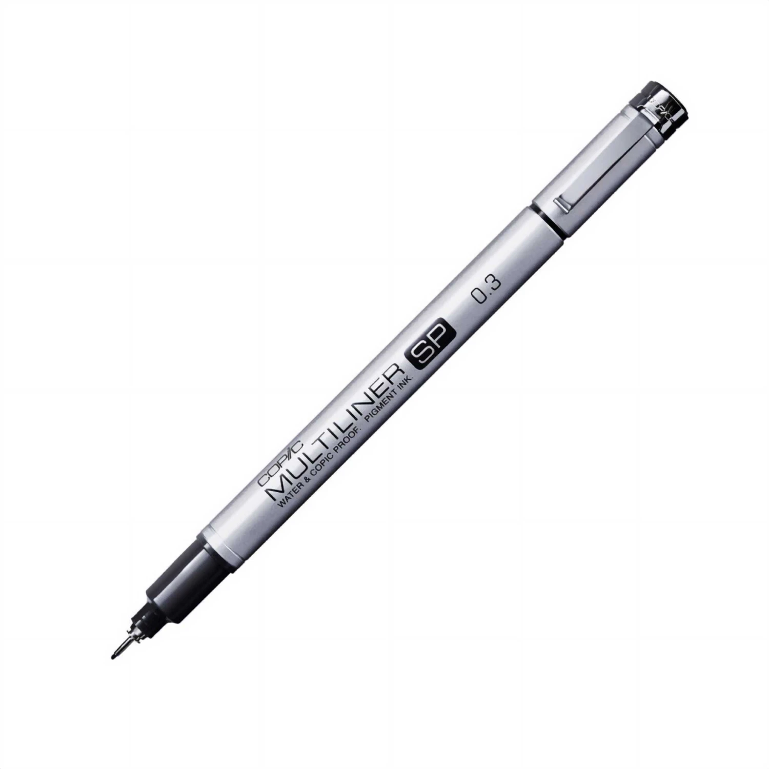The Copic Multiliner SP is permanent pigment liner with a brushed aluminium finish.