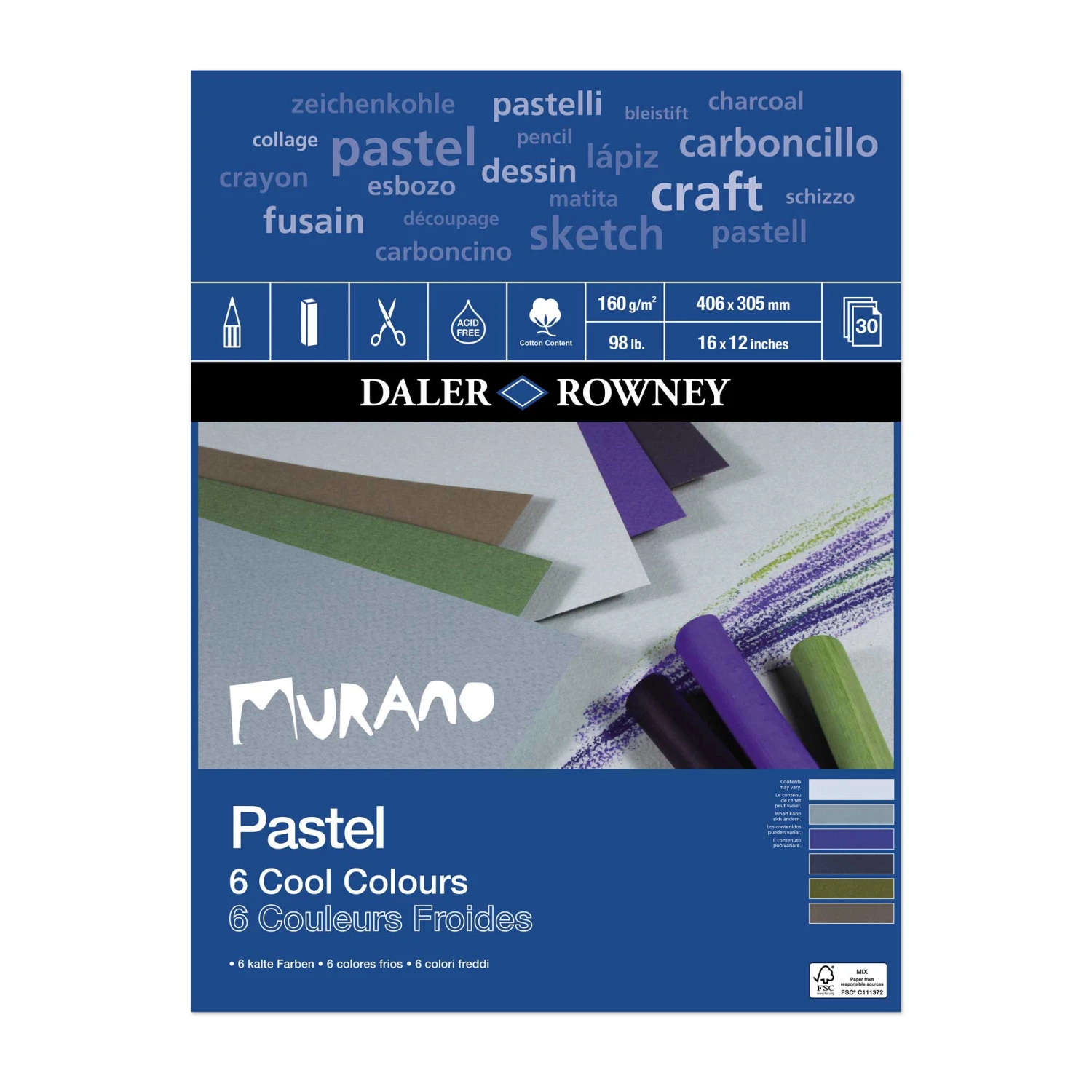 Weighing in at a substantial 160gsm, Murano is perfect for fine art applications such as pastel, pencil or charcoal, and creations such as card-making, memory book or anything that takes your imagination.Â