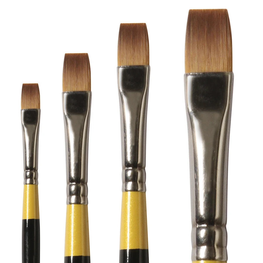 The dark-tipped synthetic filaments and black shadow aluminium ferrule combined with an ergonomic black handle give this acrylic paint brush style, affordability, flexibility, durability, and comfort.