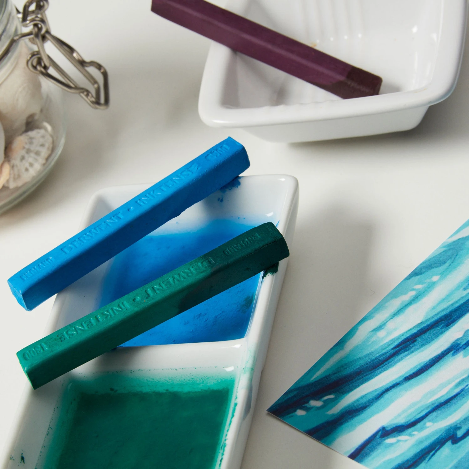 These Derwent Inktense Block Metal Tin Sets feature the brilliance of their Inktense pencils but in a slim block making it easy to cover large areas really quickly. Use like a pencil or soft pastel and with a watercolour brush to turn flat colour and smooth highly pigmented ink washes, or take colour directly from the block like a traditional watercolour half pan to paint directly with Inktense.