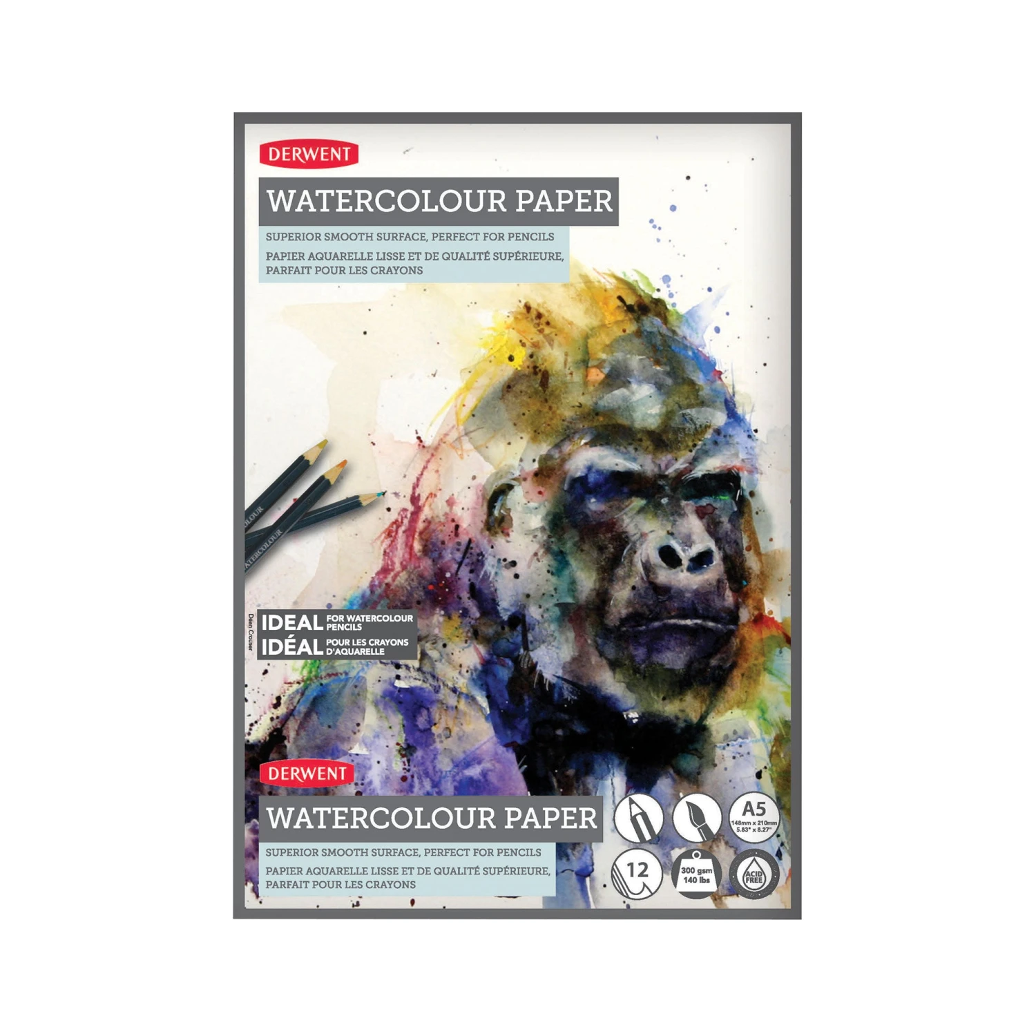 The beautifully smooth natural wove Watercolour Paper has been especially developed for use with water-soluble pencils, but it can also team up with all types of water-soluble media; particularly the watercolour pencil and inktense blocks ranges. The superior smooth texture of the paper makes it incredibly versatile; it enhances your pencil work whether wet or dry, and is ideal for intricate watercolour paintings as well as even washes of colour, or a combination of the two!Â