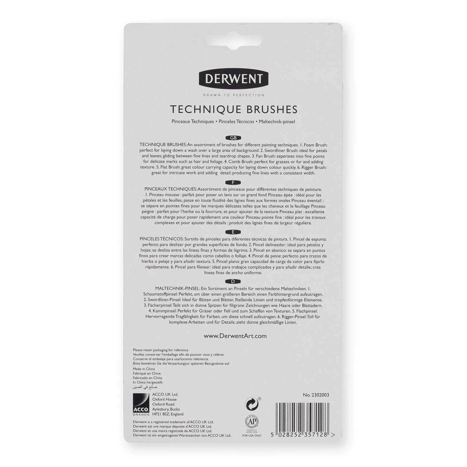 A specially selected assortment of brushes for different painting techniques; each brush in this set has been developed to produce different marks, allowing the artist greater creative possibilities.