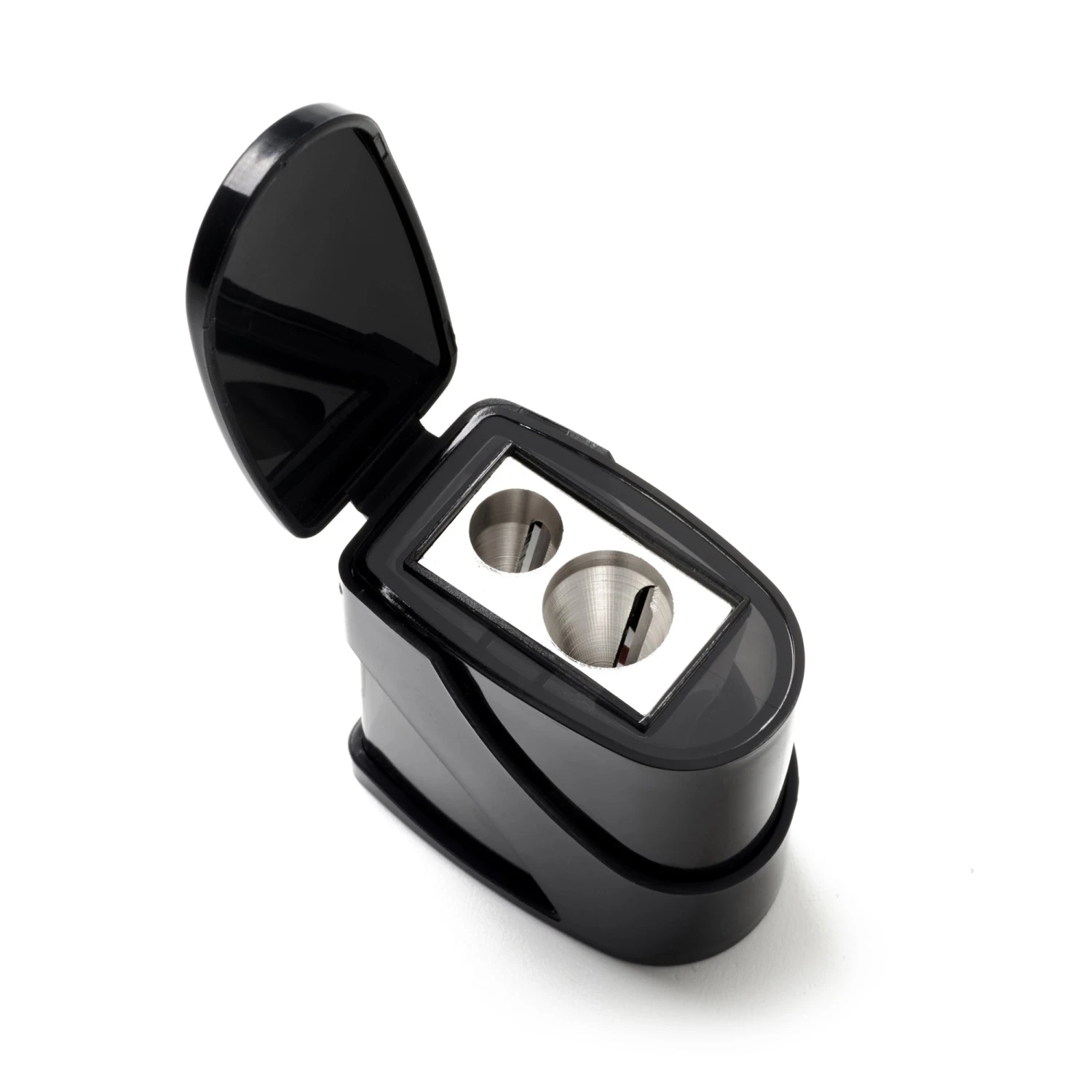 Derwent Twin Hole Tub Pencil Sharpener, featuring a dual size metal sharpener with high quality blades, that are long lasting to create a consistently smooth and sharp point. With hole sizes of 11.5mm and 8.25mm for optimum compatibility with most artistÂ