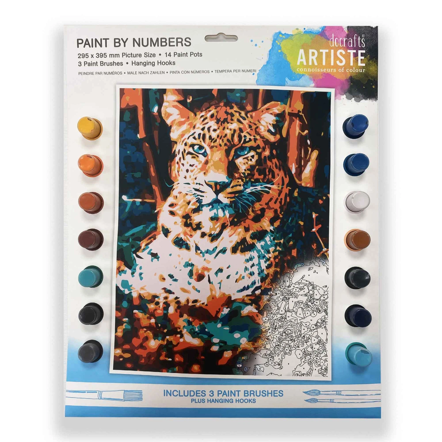 Create your own masterpiece with ease with this Docrafts Artiste Paint by Numbers. Use the provided paints and brushes, following the numbers provided on the page, and watch the stunning leopard come to life by your own hand! A great gift for budding artists interested in learning how to paint.