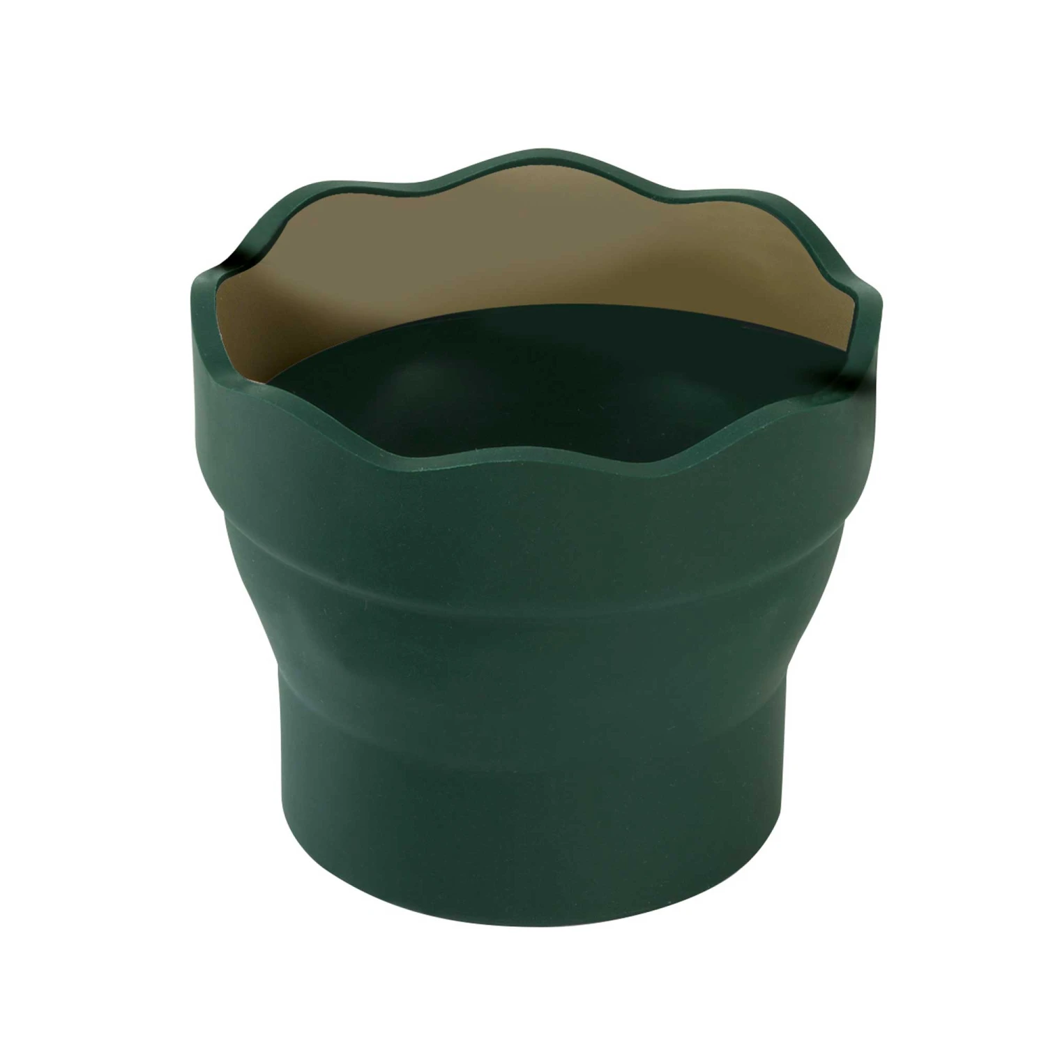 This foldable green water pot is made from flexible rubber. It has a folding mechanism that allows you to save space when in storage or transit.