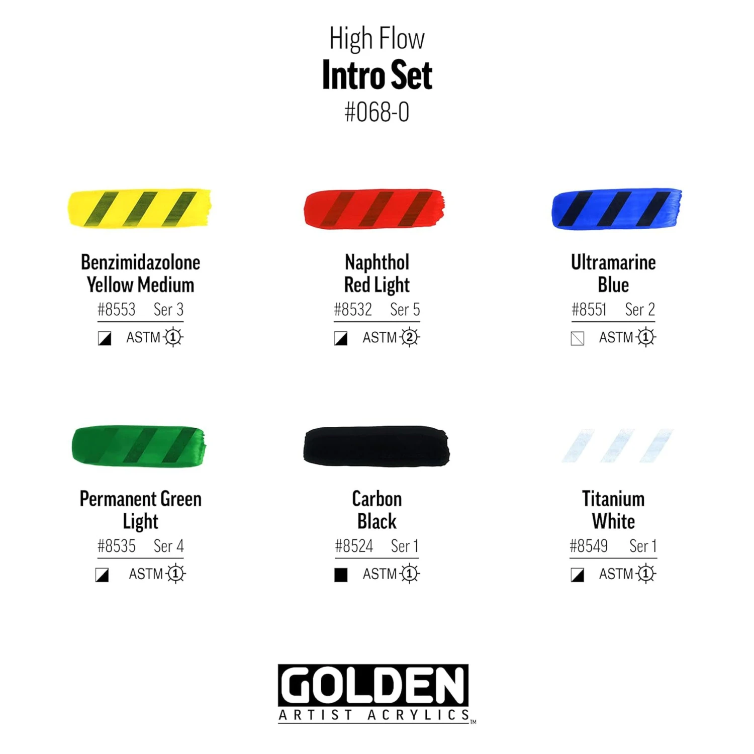 Includes: Benzimidazolone Yellow Medium, Naphthol Red Light, Ultramarine Blue, Permanent Green Light, Carbon Black and Titanium White.