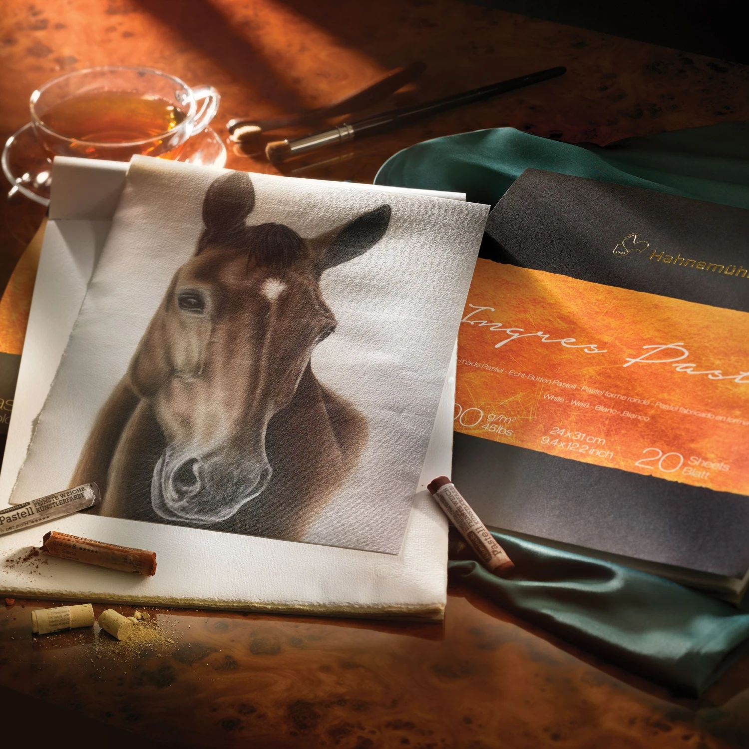 Hahnemühle Ingres Pastel offers pastel artists the perfect surface. Designed for this specific artistic technique, the Ingres Pastel 100gsm paper has fine ridges and a slightly rough surface. It allows even colour adherence without using a lot of pressure, producing precise and colour-intensive results.