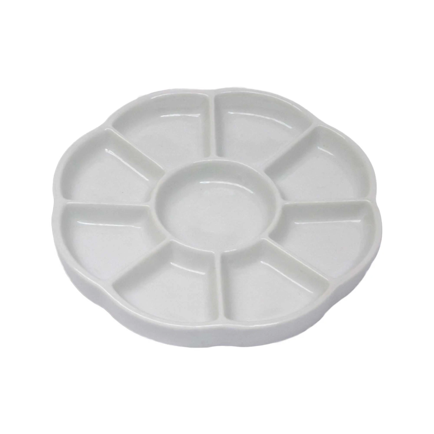 The porcelain surface of this daisy-shaped palette prevents colour staining, particularly with high pigmented colours. Ideal for use with watercolours, ink, and gouache.Â