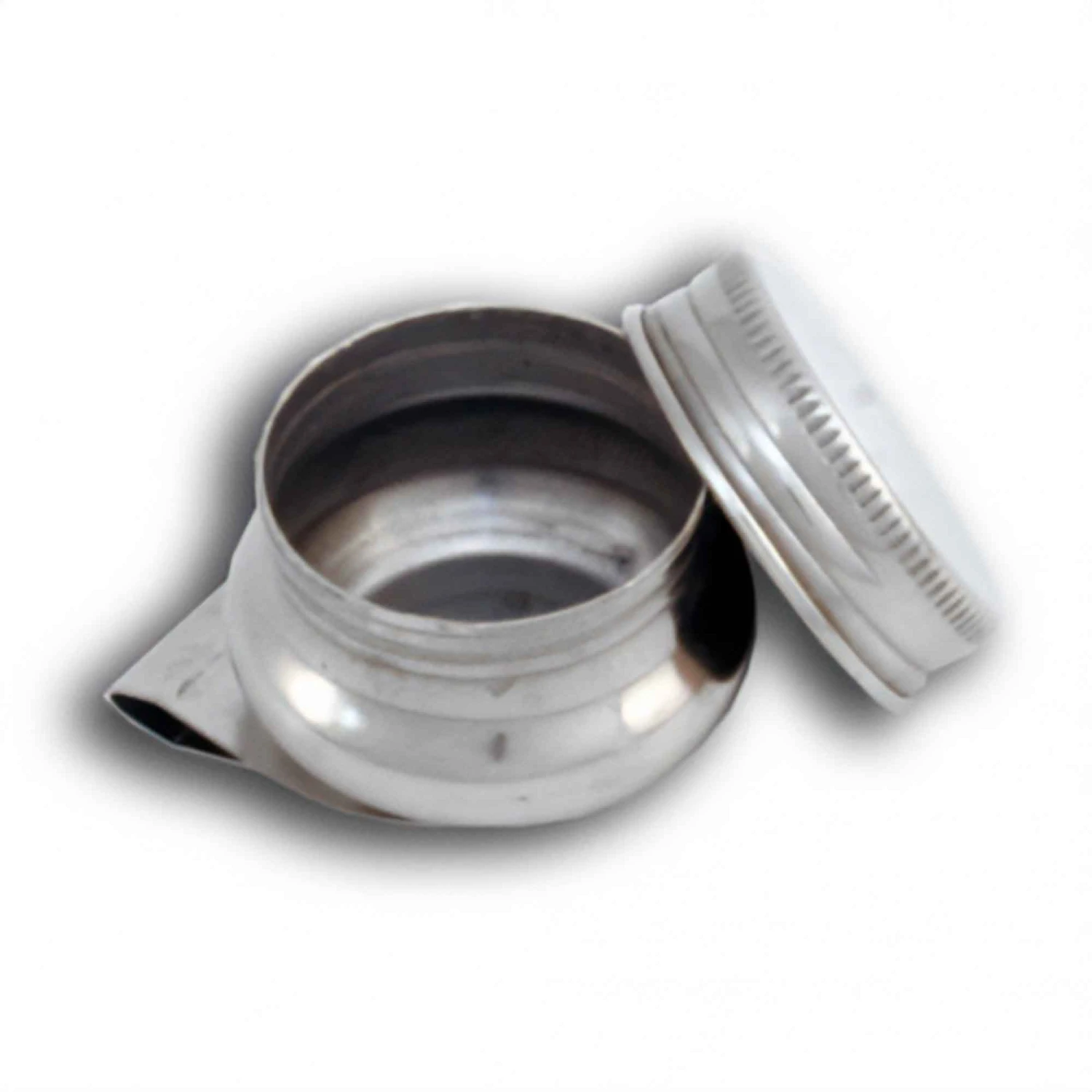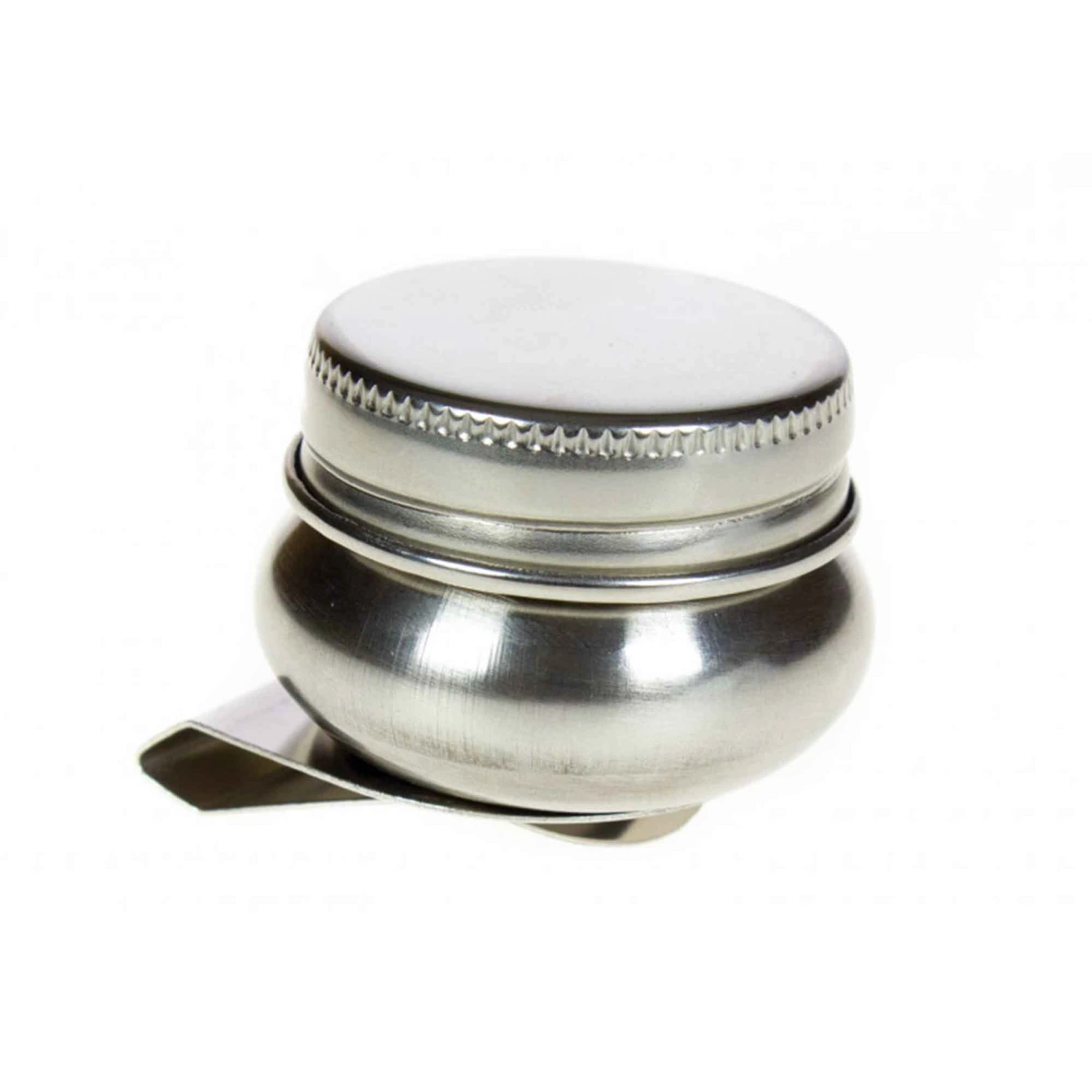 A single dipper designed to clip on to a palette to hold solvents or oils during painting.
