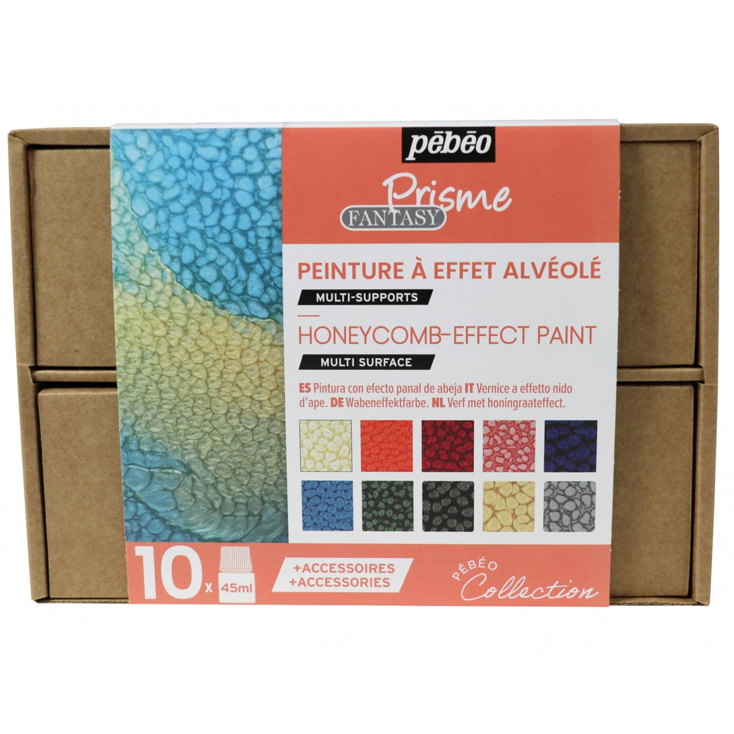 - 10 x 45ml Pébéo Prisme Paints (Eggshell White, Vermilion, Cherry Blossom, Icy Pink, Midnight Blue, Caribbean Blue, Leaf Green, Moonstone, Onyx, Antique Gold),