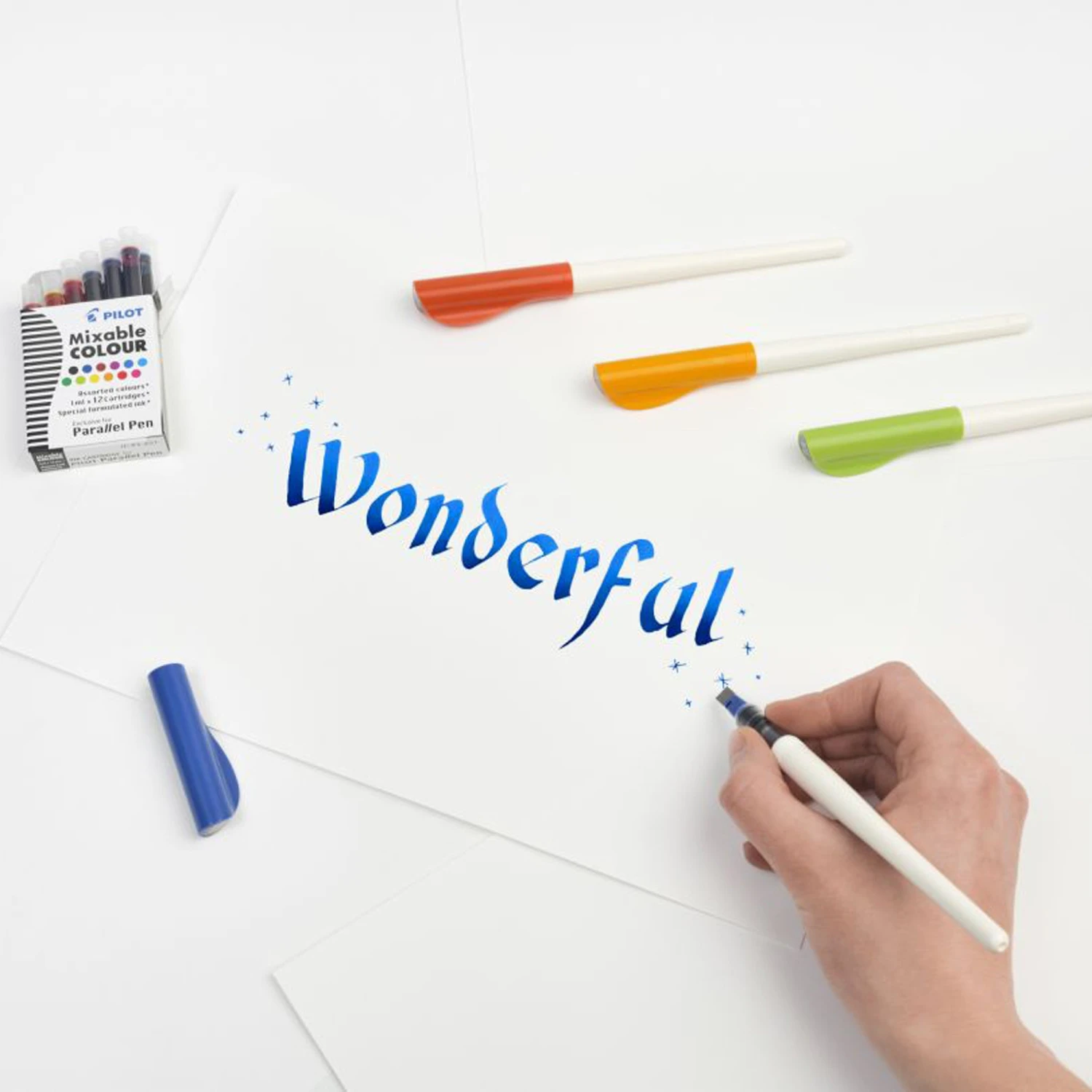 The art of calligraphy available to all! The Pilot Parallel Pen is the first fountain pen that allows thick and thin strokes to be created in complete simplicity. The Parallel Pen comes with an IC-P3 cartridge.