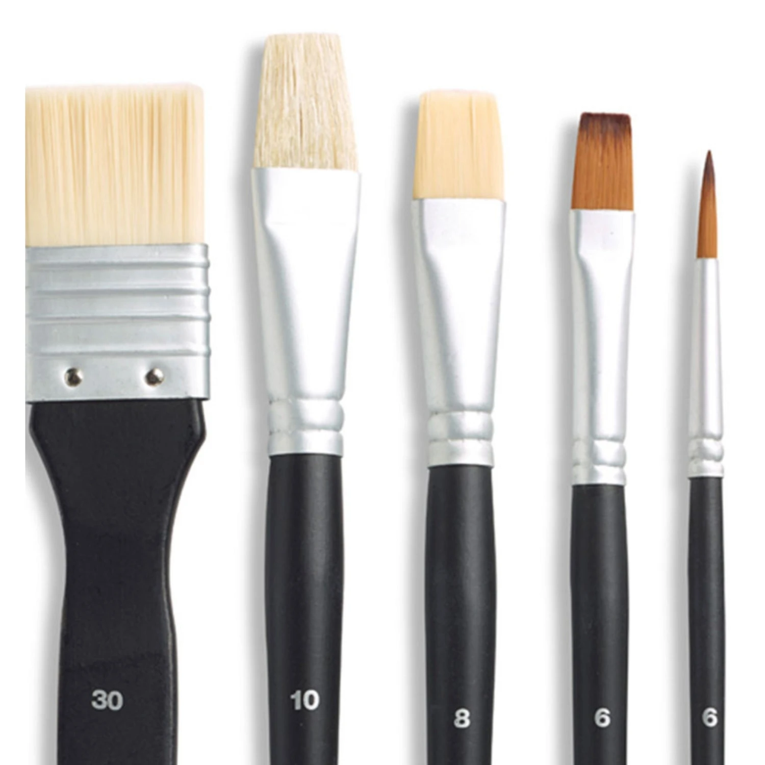 An inexpensive set of brushes perfectly suited for young artists and educational use. This set contains a mix of brushes designed for acrylic, oil colour and watercolour.