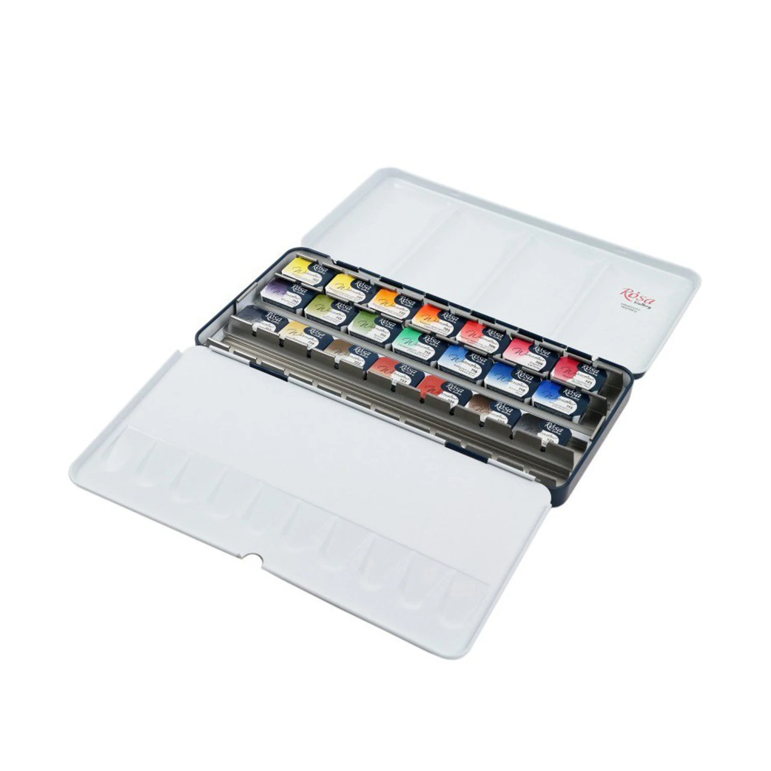 This all-rounder ROSA Gallery Watercolour set contains 21 whole pan watercolour paints, perfect for a variety of subjects and disciplines.Â