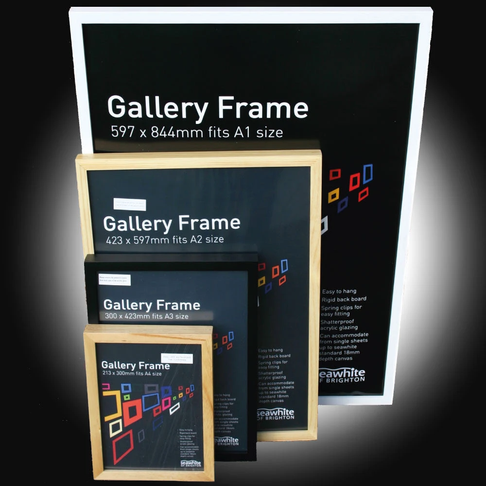 These solid wood frames with shatter-proof acrylic glazing from Seawhite of Brighton allow quick mounting of paper, 1.8cm canvas frames or canvas boards – simply clip work in to gain instant results.