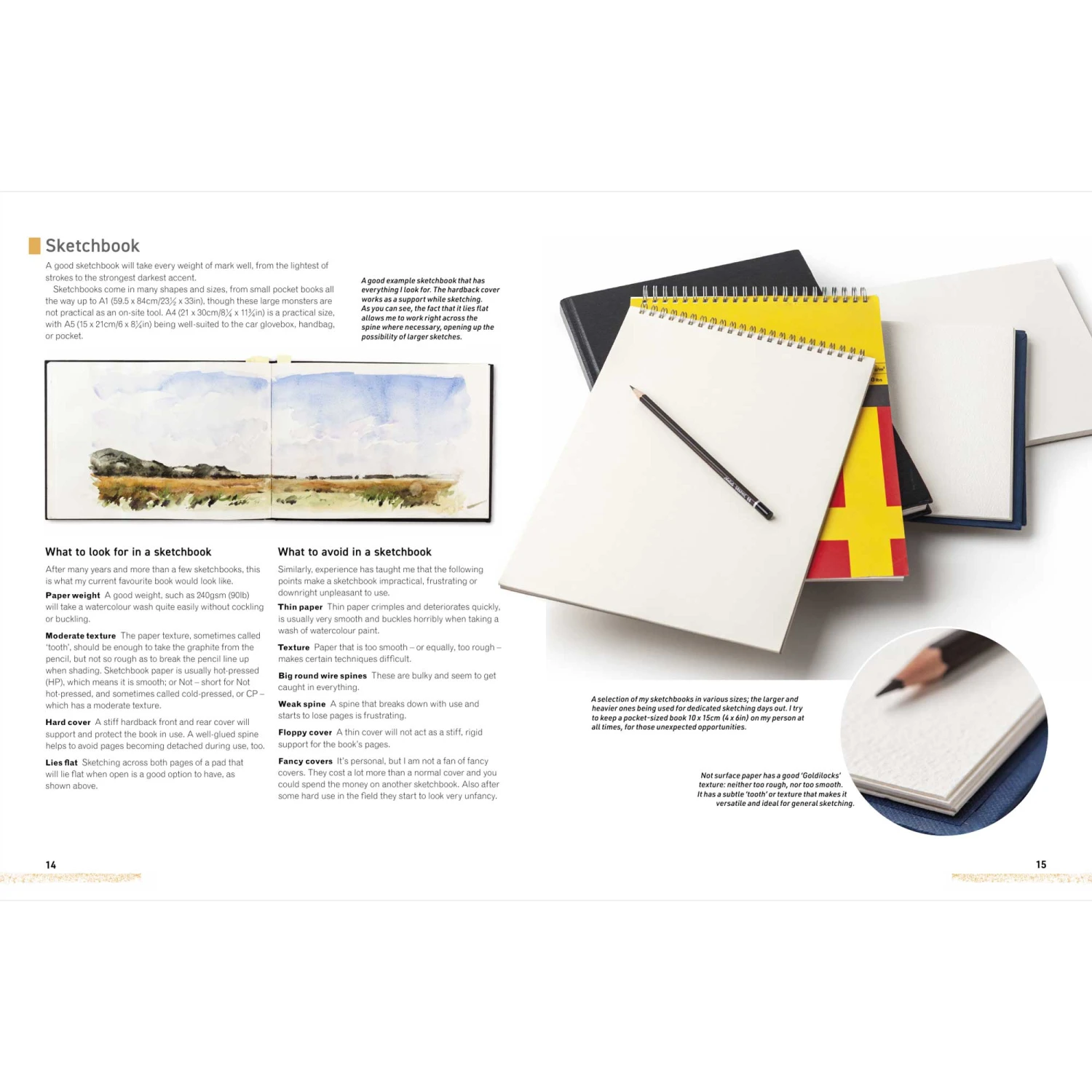 Numerous simple step-by-step exercises as well as larger projects lead the complete beginner through the book, building towards more complex and rewarding artworks. The book teaches how to sketch with a range of media, starting from graphite pencil and including information and exercises on charcoal, pen and ink and others.Â