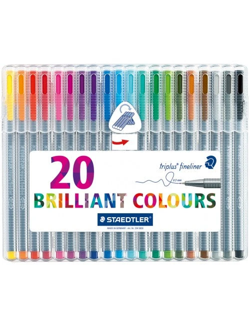 Fineliner in ergonomic triangular shape for relaxed and easy writing, or fine detail colouring. Odour neutral, water based pens.