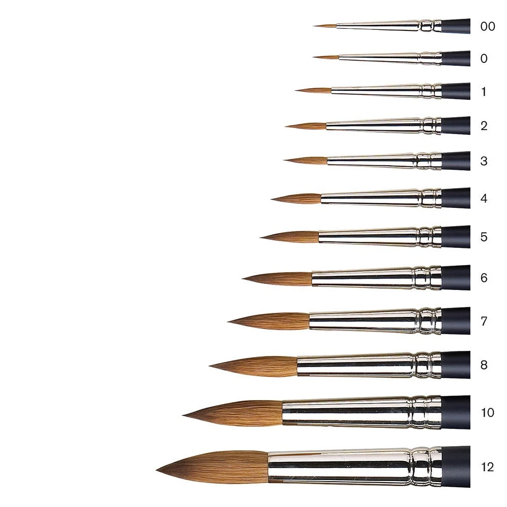 Round – The most popular round bellied water colour brush . Excellent for washes as well as detail work. 12 sizes from 00 to 12.